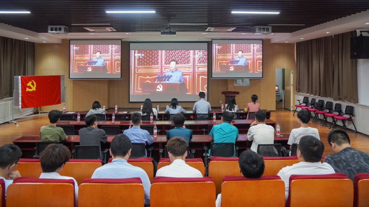 7月1日上午8时,庆祝中国共产党成立100周年大会在北京天安门广场隆重举行。中共中央总书记、国家主席、中央军委主席习近平发表重要讲话。学院全体教职工和学生党员在学校第一会场、第三会场和鸿远教学楼五楼报告厅集中收看了大会现场直播。