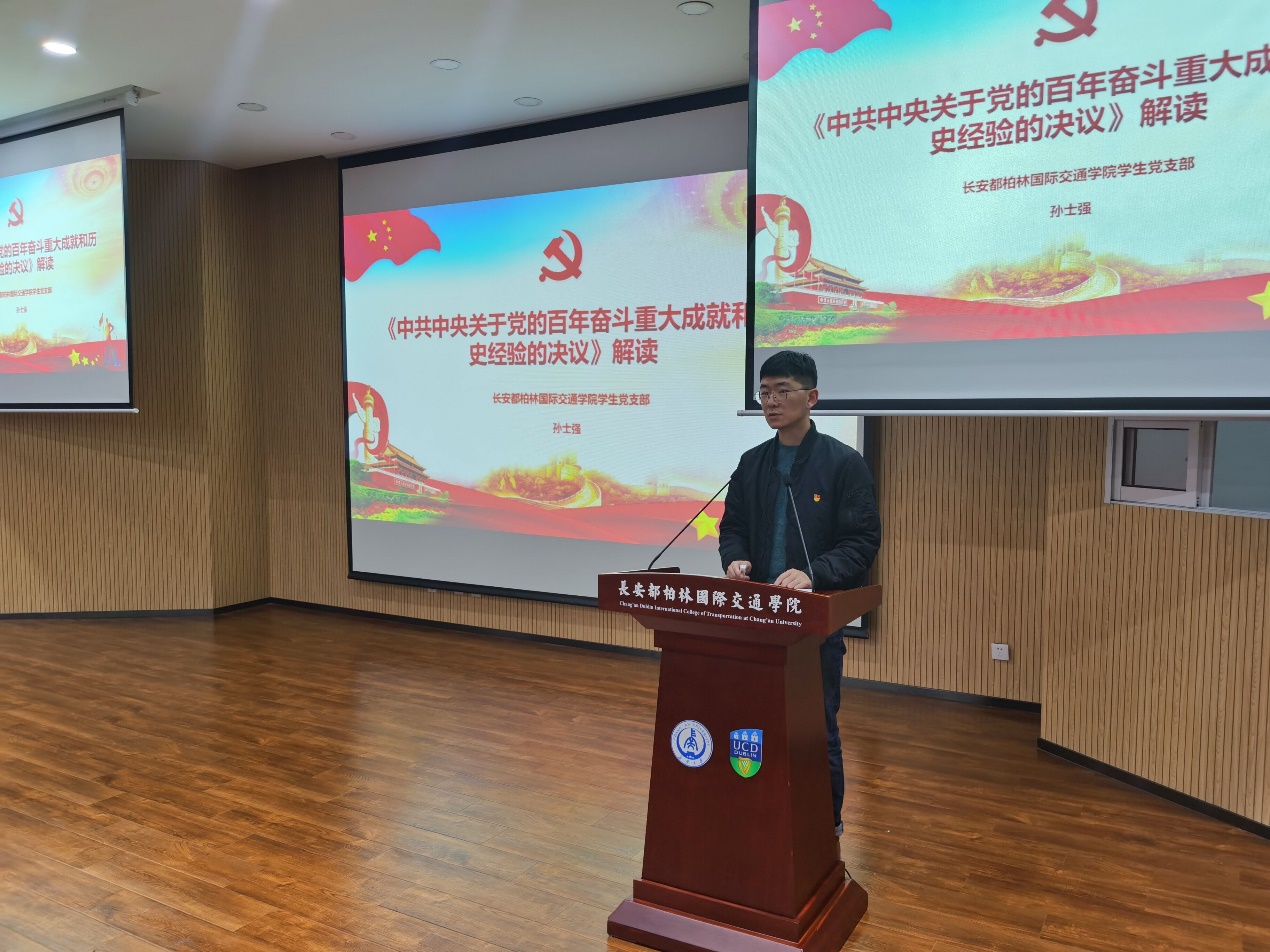 学生党支部于12月12日20时在鸿远教学楼五楼报告厅开展党的十九届六中全会会议精神专题党课学习。本次党课由学生党支部书记孙士强主讲。