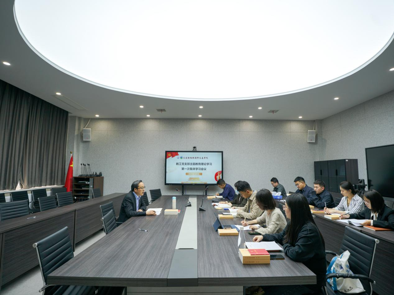 教工党支部在四楼会议室进行主题教育理论学习第一次集体学习。教工党支部全体党员及学生事务部全体党员参加学习。