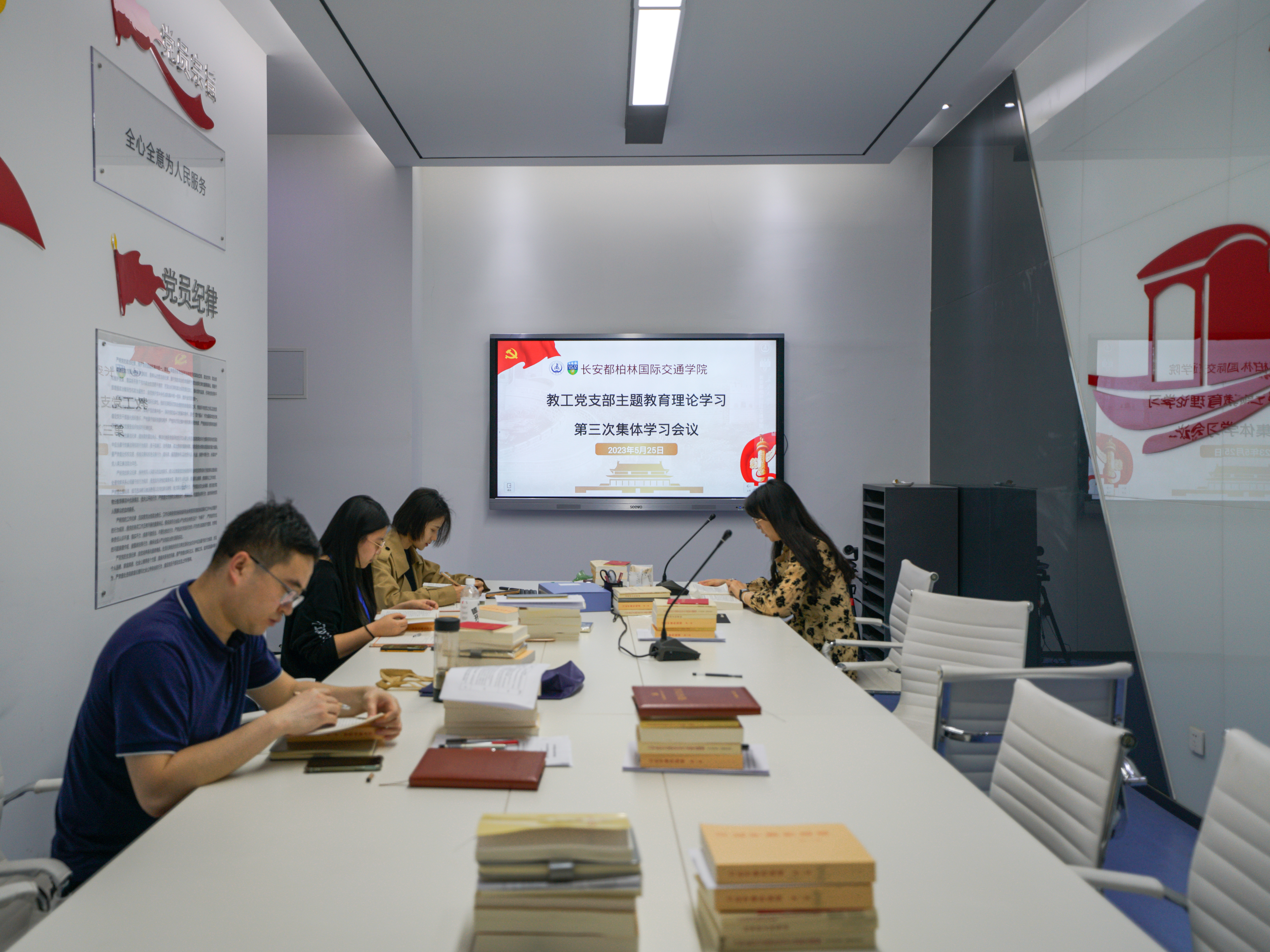 教工党支部全体党员于鸿远教学楼五层党建活动室开展主题教育第三次集体学习会议。