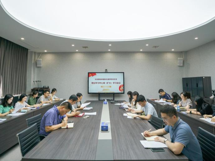 在四层会议室召开党总支理论学习中心组扩大学习会议。会议由院党总支书记赵亮主持,学院全体教职工参会学习。