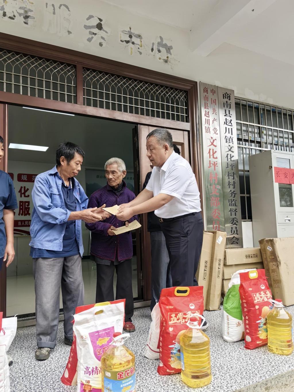 在当地干部陪同下,两院领导一行走访了冷水鱼养殖基地及八月果种植基地,了解当地特色产业发展状况、经营效益并向困难群众发放慰问金和慰问品,向文化坪村捐赠了办公物资。