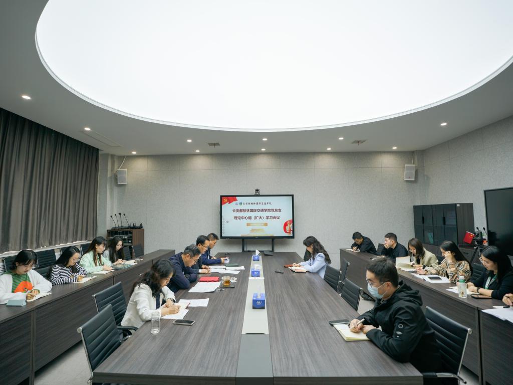 在鸿远教学楼四层会议室召开党总支理论学习中心组(扩大)学习会议。学院全体教职工参会学习,会议由学院党总支书记赵亮主持。