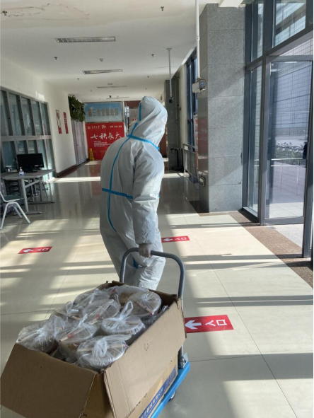 在严峻的疫情形势下,寒冷的天气未能阻挡志愿者的温情,他们负责为同学们提供每日送餐服务、引导核酸检测现场秩序、配合医护人员上门核酸检测,用自己的实际行动在基层防疫一线践行着当代大学生的责任与担当。“疫情当前,责任在肩”,学院各学生组织工作人员秉持“全心全意为同学服务”的宗旨,积极响应学院号召,主动请缨担当志愿者。他们奔波在食堂与宿舍楼间、每层宿舍楼道间,为同学配送一日三餐和提供生活起居上的帮助。