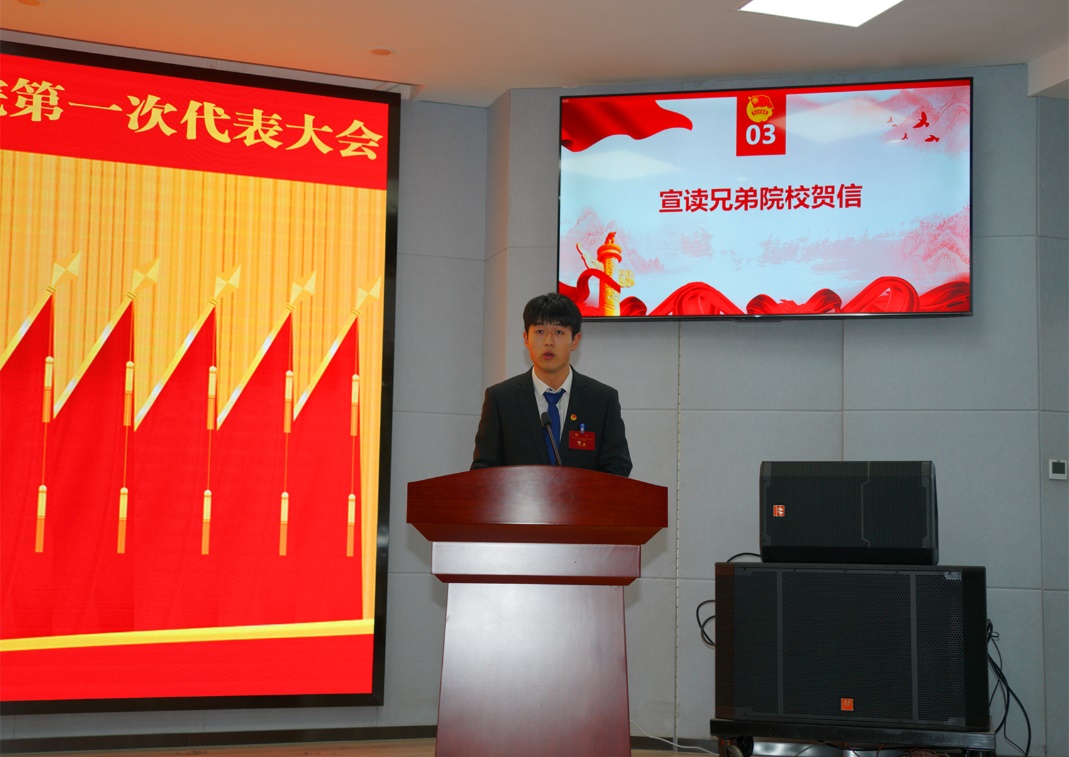共青团西北大学文化遗产学院委员会、共青团西北大学物理学院委员会、共青团西北大学地质学系委员会发来贺信,院团委副书记张祎康宣读贺信。