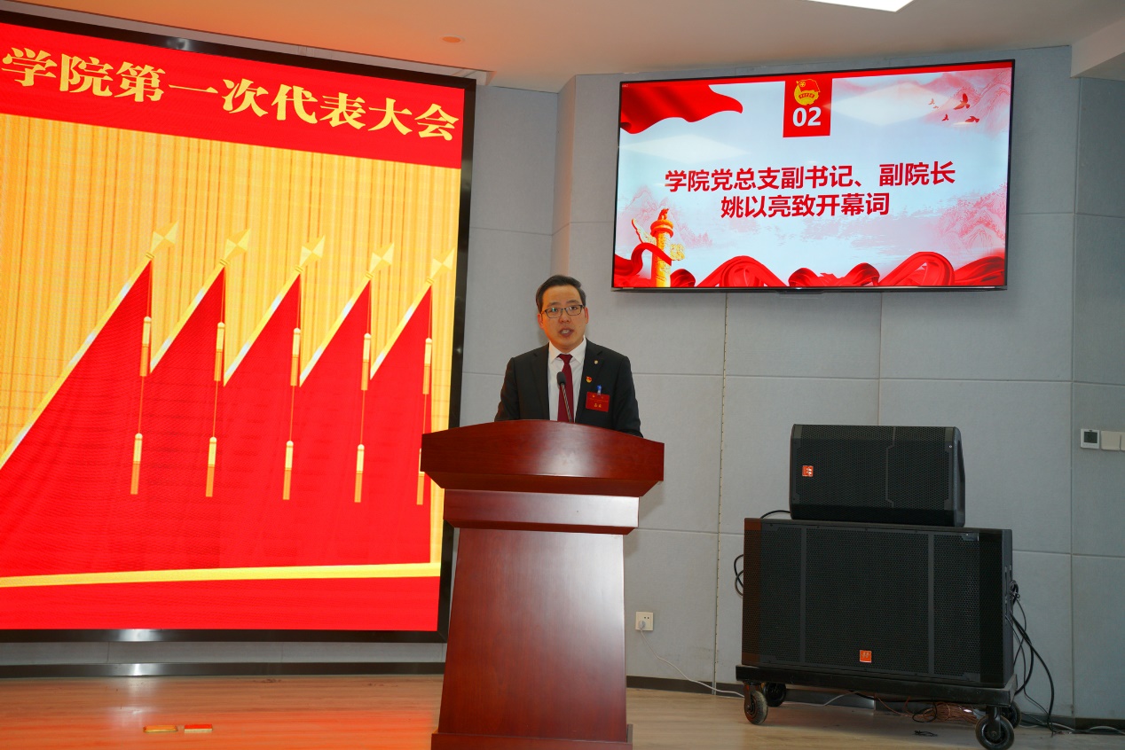 院党总支副书记、副院长姚以亮致开幕词。他向一直以来重视和关心学院共青团工作的领导表示感谢,对与会全体师生代表表示欢迎。他指出学院团委紧密围绕学院中心工作和育人目标,在思想政治引领、青年素质提升、打造品牌活动以及共青团自身建设等方面开展了内容丰富、扎实有效的工作,为学院建设与发展做出了积极贡献。他号召全体团员青年继续发扬“党有号召,团有行动”的光荣传统,用青春的梦想和激情,用实际行动去践行属于自己的青春梦。