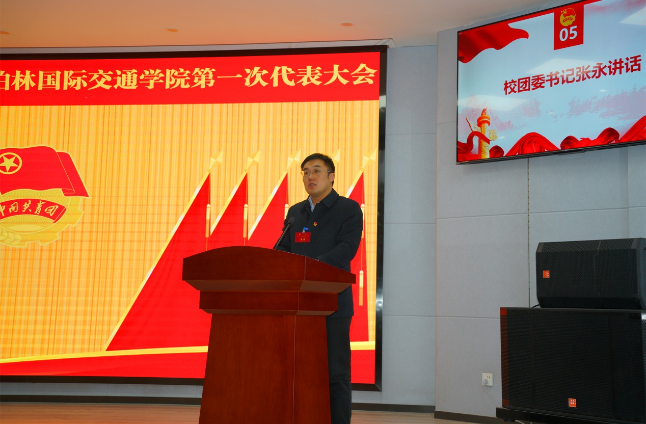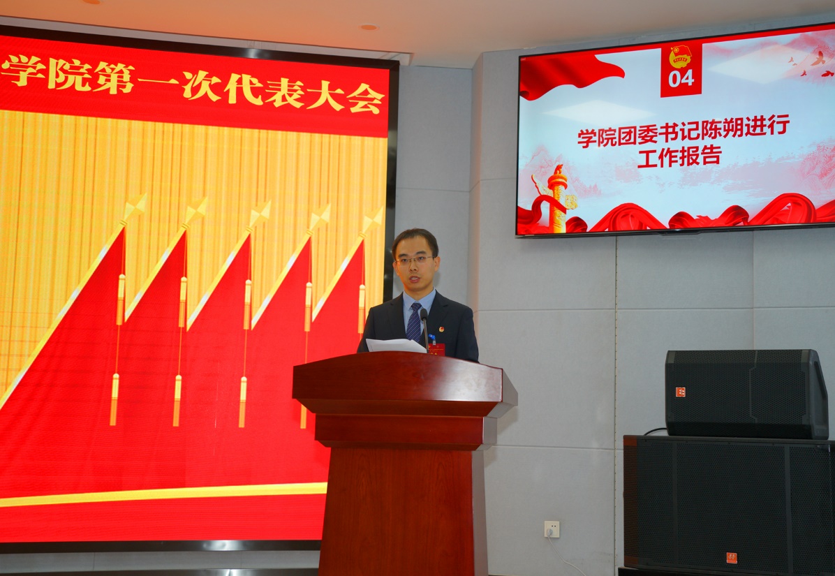 院团委书记陈朔代表学院团委作工作报告。报告全面系统地回顾了过去一年学院共青团工作取得的成绩,分析了当前共青团工作面临的挑战与机遇,明确了下一阶段工作的总体思路和发展方向。他指出,站在全面建设社会主义现代化国家新的历史起点上,学院团委要不断增强信心,坚持改革创新、坚持与时俱进,切实发挥共青团组织的桥梁纽带作用,不断提高组织青年、引领青年、服务青年的能力。
