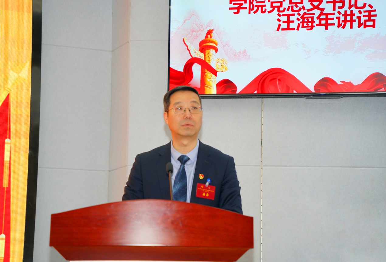 院党总支书记、院长汪海年在大会上讲话。他代表学院党总支对大会的召开表示祝贺,向出席大会的全体代表、广大青年学生致以亲切的问候。他指出,学院团委自成立以来,在院党总支和校团委领导下,深入贯彻党的群团工作会议精神,在凝聚青年、服务大局、当好桥梁、从严治团、队伍建设等方面取得了显著成绩。他对学院共青团工作提出三点希望:一是要引导青年强化理论武装,筑牢思想根基;二是要坚定理想信念,勇担时代使命;三是要练就过硬本领,投身强国伟业。他强调,全体团员青年要以饱满的政治热情,明确光荣使命,认真履行职责,在伟大建党精神的指引下,与祖国共奋进、与时代同步伐、与学校齐发展,争做担当民族复兴大任的时代新人。