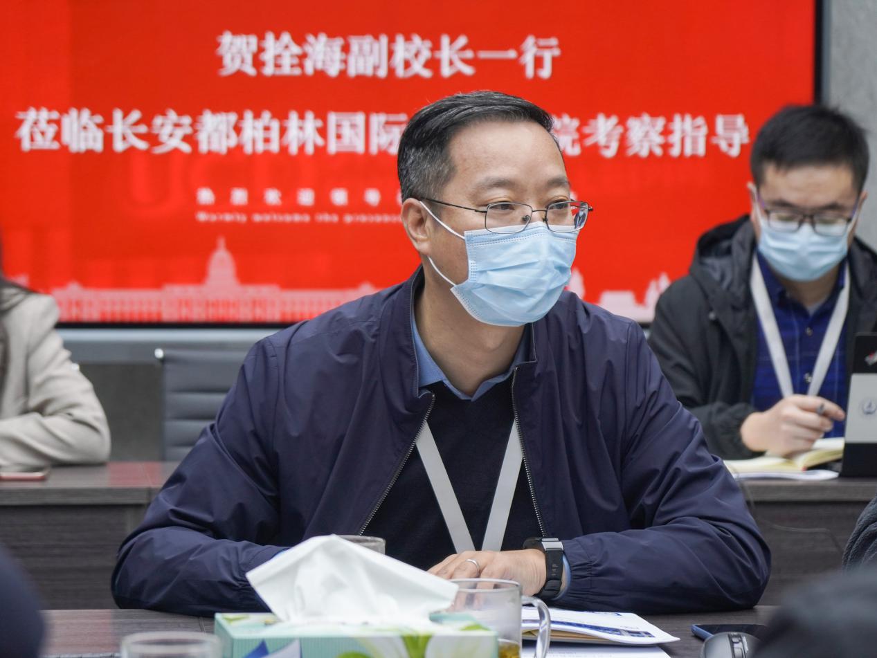 贺拴海听取了学院中外合作办学运行发展以来的工作汇报,并与学院领导班子进行座谈交流。他对学院成立以来在各项事业中所取得的发展成果及逐步扩大的国内与国际影响力给予高度认可,并针对学院当前阶段在用人制度、教学管理、财务管理、办学空间等方面所面临的困难与挑战给出指导建议与反馈。他表示,学校高度重视学院此次综合改革发展工作,各职能部门也会达成共识,积极配合,依据学院综合改革方案提供相应支持。同时,他要求学院提高思想站位,强化创新意识,在综合改革过程中“大胆提需求,做出亮点来”,争取在中外合作办学领域彰显自身办学特色,形成“长大模式”,为学校“双一流”建设与国际化人才培养做出更大贡献。