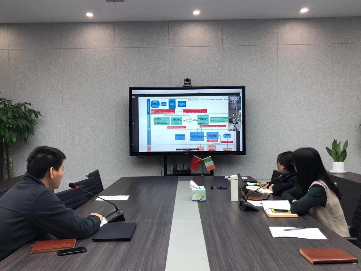 同爱尔兰都柏林大学共同召开成绩评定工作研讨会(Provisional CDIC CHD-UCD Management Meeting: GradeApprovalProcess),本次会议采取远程视频的形式。学院副院长柏强、教学教务部主任贾婕妤等与学院教务长PaulFanning、都柏林大学中国联合办公室主任PaulaMcGarry等,参加了本次会议。