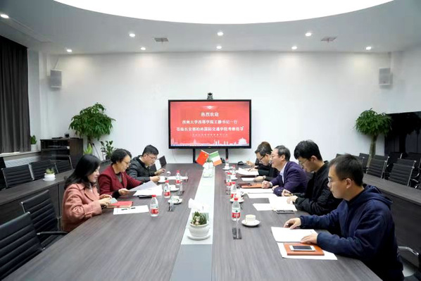 会上,汪海年书记对王静一行的到来表示热烈欢迎,并对学校情况进行了简要介绍。随后,详细介绍了学院的成立背景、专业设置、部门构成及运行现状。他表示,学院从2018年开展的合作办学项目前身发展至今,离不开学校及专业学院的大力支持。目前学院所开设的3个专业均属交通运输工程学科,为我校的“王牌专业”,学院依托中外两校优势学科力量,致力于培育“新工科+大交通+国际化”高端技术和管理人才。姚以亮副书记针对学院党建、学生日常管理、辅导员队伍建设及学院宣传等方面的情况进行了补充说明,重点阐述了学院人才培养过程中“引进来、走出去”的国际化特色培养理念和实践。