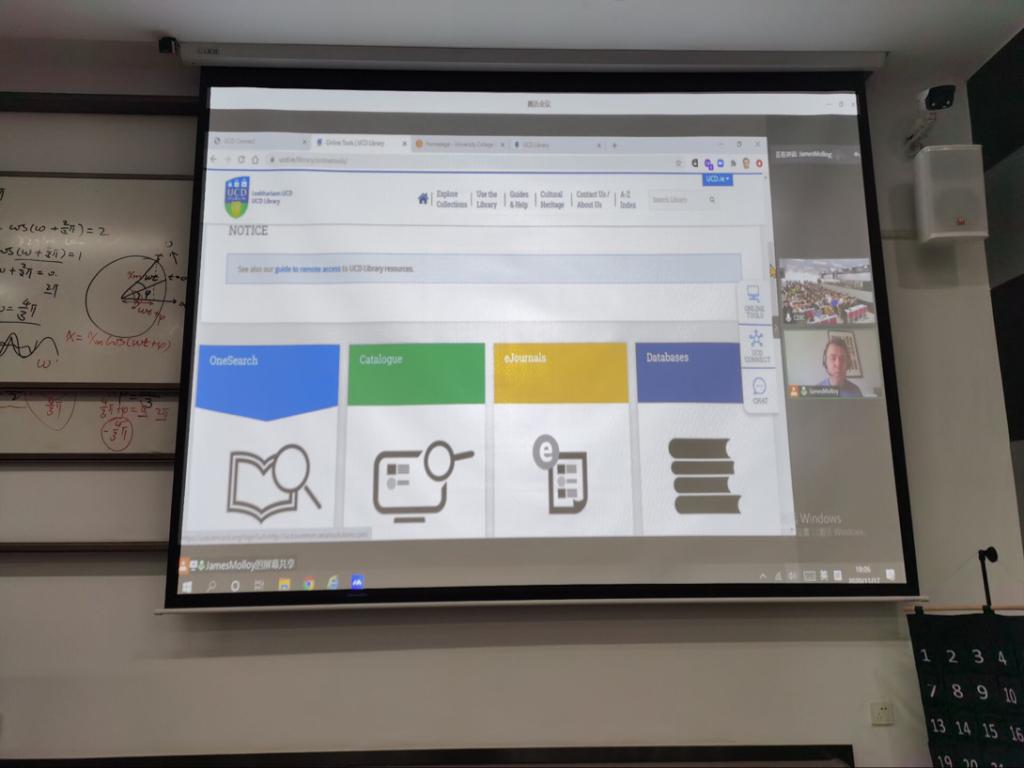 JamesMolly老师在课程中介绍了都柏林大学图书馆系统中的资源容量,并强调图书馆的资源对于大学学习生活的重要性,他表示充分利用图书馆系统中的资源将助力同学们取得更优异的学习成果。