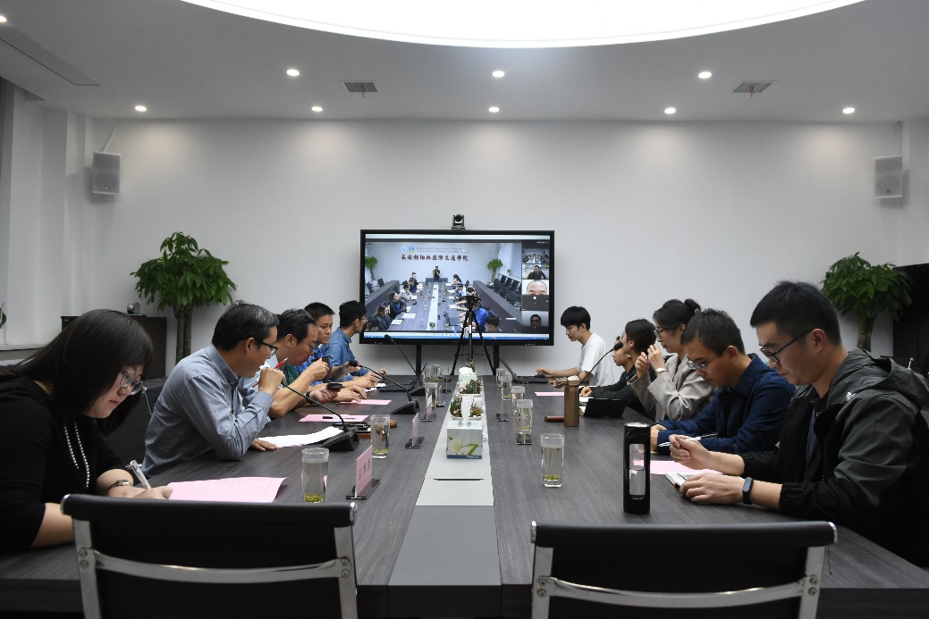 学院教学教务部副主任贾婕妤、学生事务部副主任孙士强、团委书记陈朔、2020级辅导员李宇航、教学教务部科员王一涵和徐晨曦在学院四楼会议室参加会议,新生家长共300余人在线参加了座谈会。