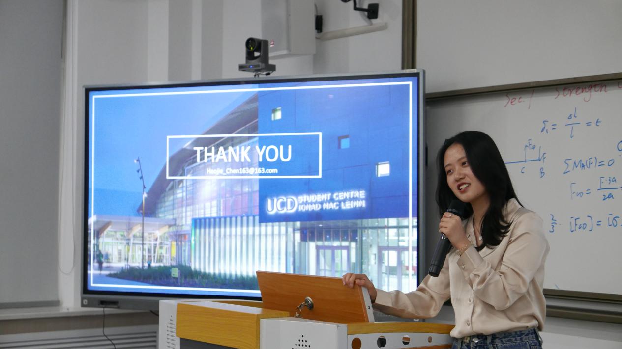 优秀毕业生陈豪杰为同学们分享爱尔兰的留学经验。陈豪杰为我校公路学院公路道路桥梁与渡河工程专业(国际工程班)毕业生,留学爱尔兰都柏林大学,获得土木工程硕士学位,现为知名国际工程咨询公司ATKINS结构工程师。她就留学爱尔兰都柏林大学的经历与同学们进行了分享,多角度介绍了爱尔兰的学习情况、日常生活及工作前景等,并现场解答了大家关于留学爱尔兰的相关问题。