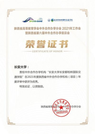 荣获“2021年度陕西省中外合作办学优秀机构”。