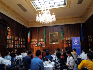 充分发挥双学籍、双学位、双语教学的联合培养优势,强化辅导员、班主任、行业专家和朋辈导师的协同育人功能,积极开展都柏林大学线上文化交流活动3次,举办“留学沙龙”8期,“朋辈论坛”4期,“名家专论”1期,着力构建“四位一体”的国际化人才培养体系。