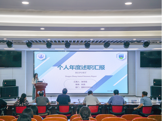 随后,学院各部门教职工按照抽签顺序依次围绕“基础工作、重点工作、总结反思、未来展望”等方面进行个人年度述职汇报,用时严格控制在6分钟以内。参会评委分别结合每位教职员工在“德、能、勤、绩、廉”等方面的综合表现与现场汇报情况进行评审打分。