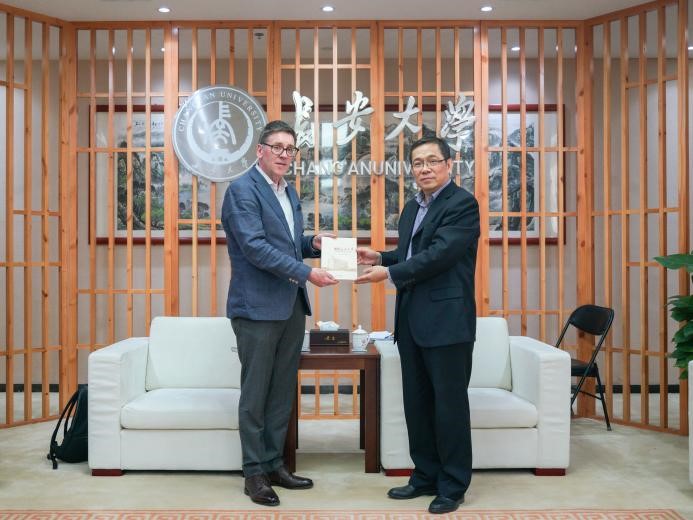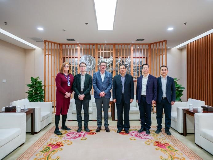 内涵式发展。Paul Fanning感谢我校的热情接待。他表示,美丽的校园环境和优良的学院设施给他留下了深刻的印象,他肯定了学院近年发展取得的成就,并期盼与我校在科研平台搭建、学生交流交换与教师海外访学等领域开展深度合作。最后,双方互赠礼物并合影留念。