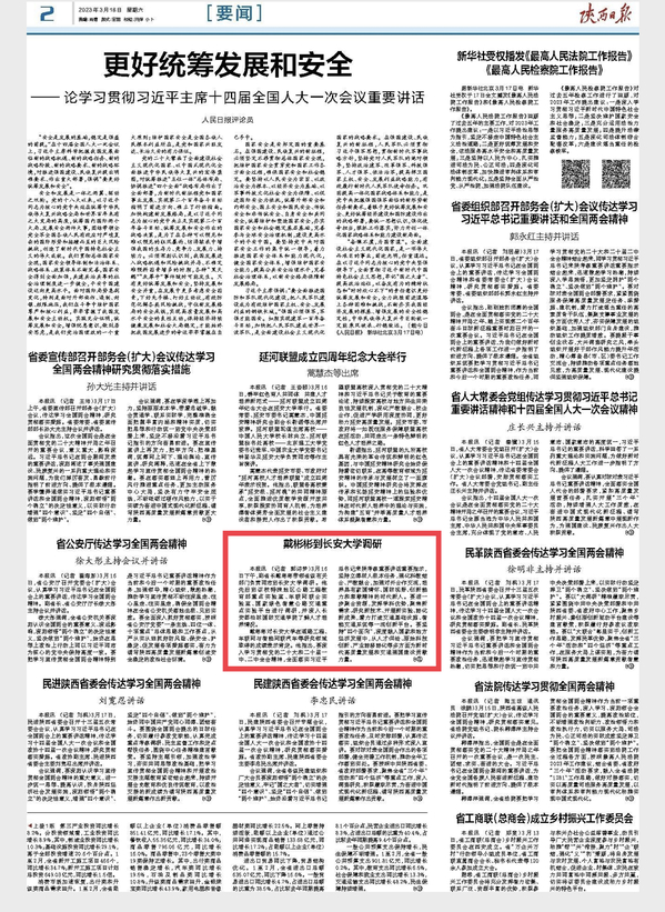 在道路工程、车联网与智能网联汽车等研究领域取得的成绩表示肯定。他指出,要深入学习贯彻党的二十大和二十届一中、二中全会精神,全面落实习近平总书记来陕考察重要讲话重要指示,坚持立德树人根本任务,强化科教结合、产教融合,加强对外合作交流,培养具有家国情怀、国际视野、创新能力和奉献精神的时代新人。要进一步聚合资源,发挥学科优势,聚焦新需求、研究新技术、开展新实验、转化新成果,着力打造交通基础设施、智能交通系统等一流创新平台。要坚持“四个面向”,深度融入国家和地方经济发展中,从人才供给、原始科技创新、产业转移转化等多方面为新时代高质量发展和交通强国建设贡献力量。