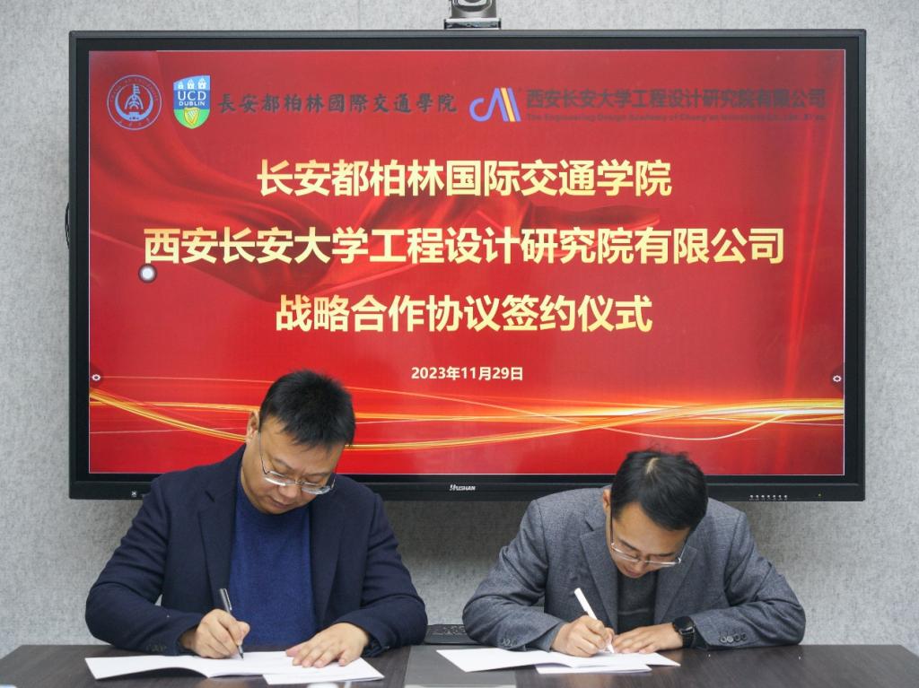 工程设计研究院有限公司战略合作协议签约仪式在鸿远教学楼四楼会议室举行,学院党总支书记赵亮和长大设计院总经理刘红平出席了签约仪式。