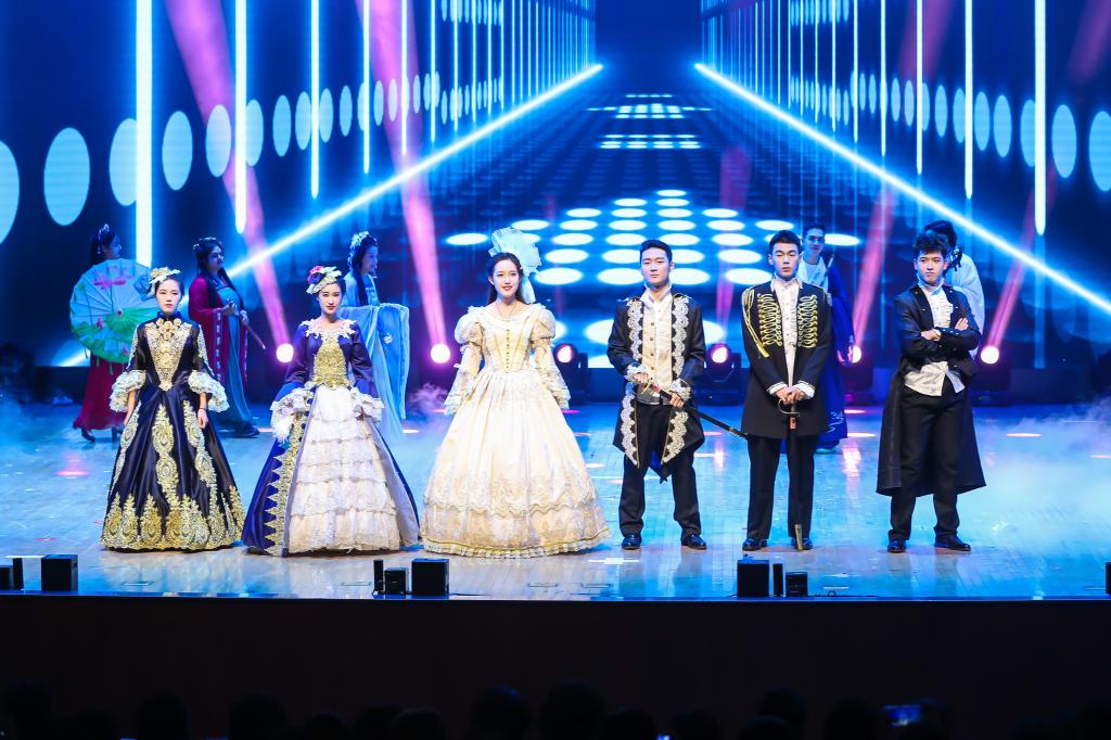 《East West》中外双方师生身着优雅的汉服和古典西式服装,伴着优美的旋律缓缓走来,展现了美美与共的文化交融。