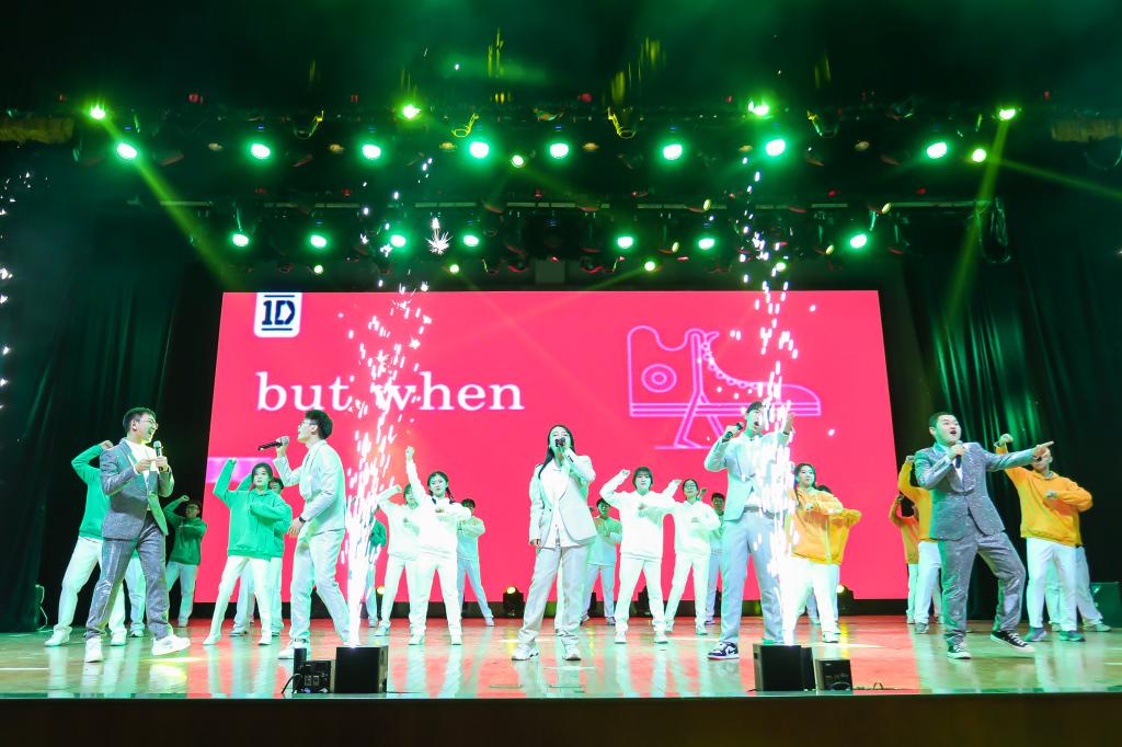 本次晚会汇集歌曲、舞蹈、情景剧、乐器演奏等多种表演类型。舞台灯光璀璨、现场气氛热烈,一片欢腾。晚会在活力四射的开场舞《What Makes You Beautiful》中拉开帷幕。