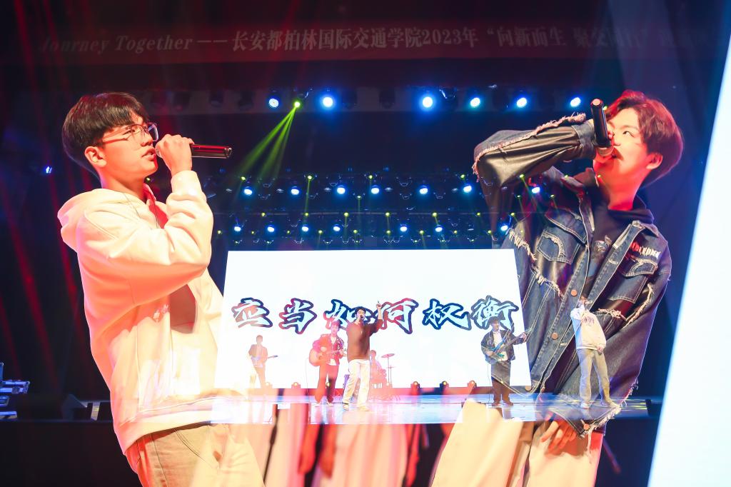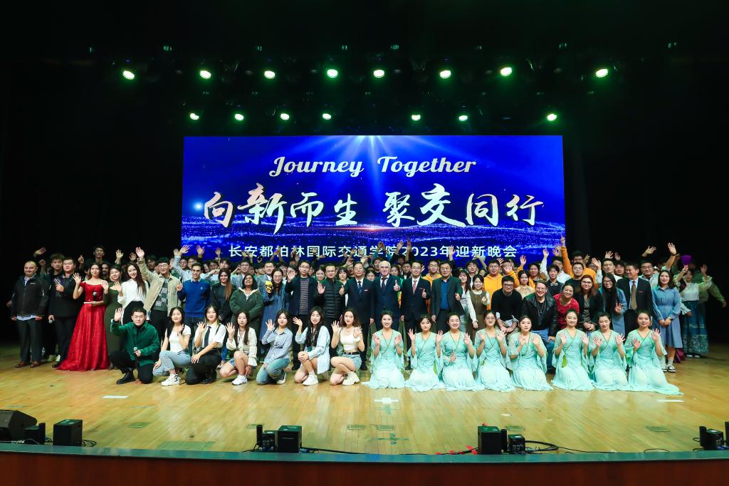 2023年“向新而生,聚交同行”迎新晚会在长安文化艺术中心大礼堂隆重举行。校团委书记张永、学生工作部心理健康教育与咨询中心主任张芳宁、招生就业处副处长赵磊、国际合作与交流处副处长高炜、学院党政领导及各兄弟院系领导老师、学院全体教职工、全体新生及各年级学生1000余人共同观看晚会。