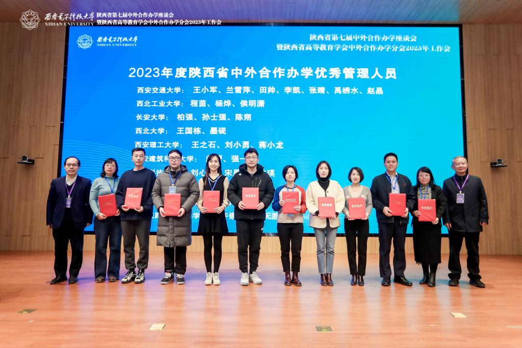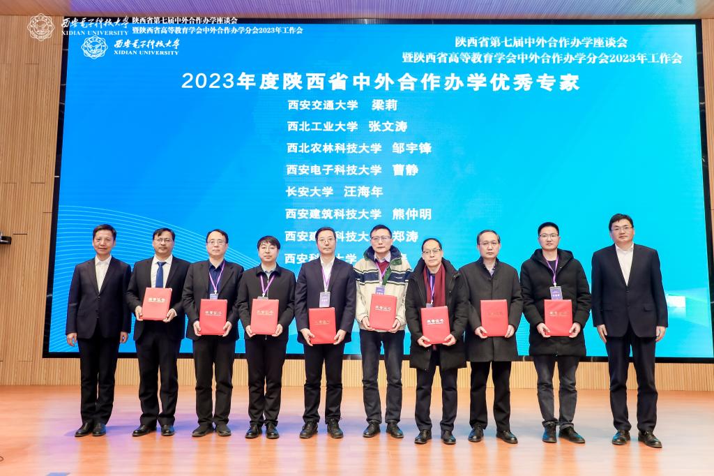 为鼓励先进,树立典型,大会对2023年度优秀机构(项目)、管理人员、专家和组织单位进行了表彰。学院荣获“2023年度陕西省中外合作办学优秀机构”称号,汪海年获评 “2023年度陕西省中外合作办学优秀专家”,柏强、孙士强和陈朔被授予“2023年度陕西省中外合作办学优秀管理人员”称号。