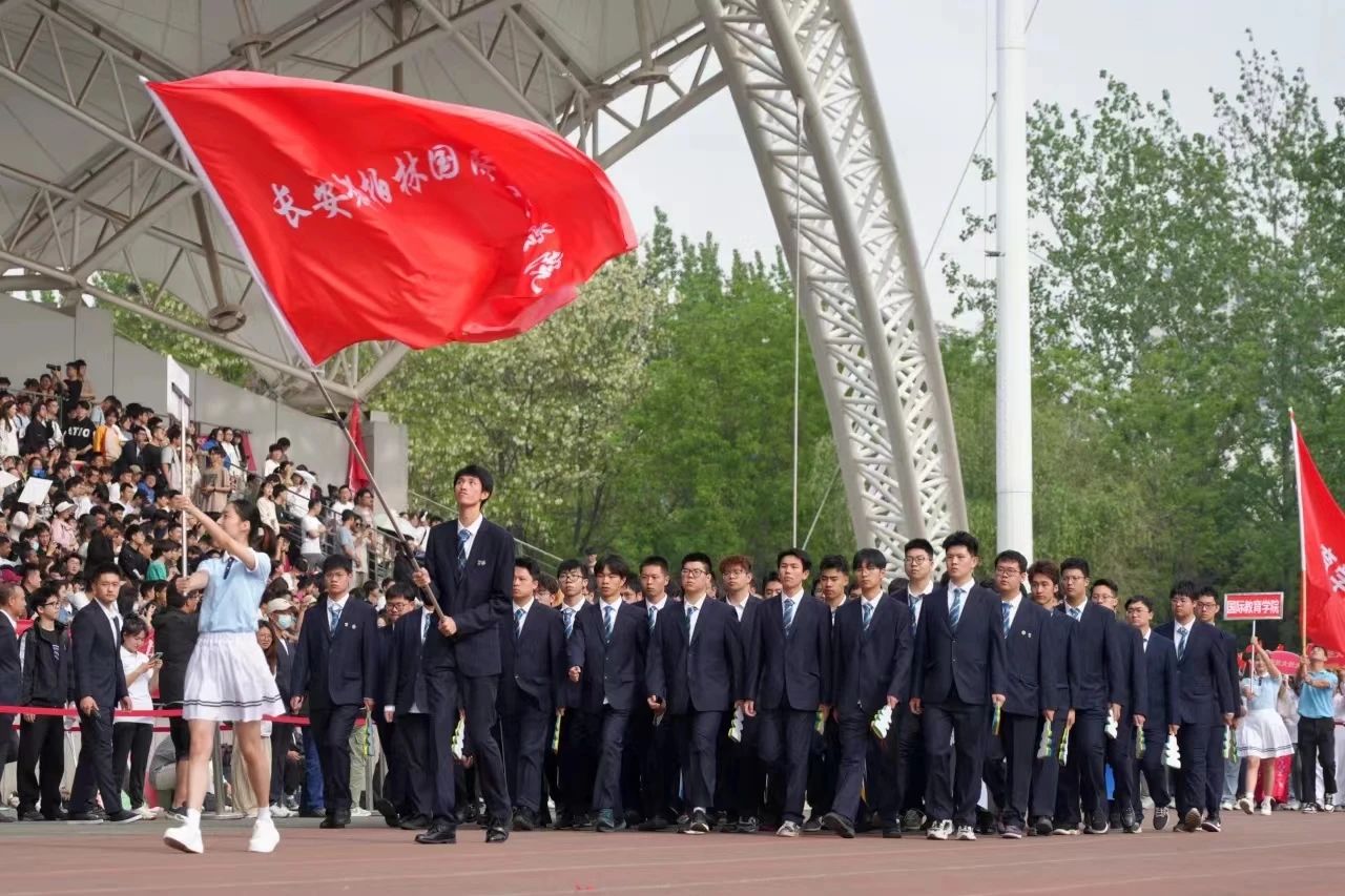 学子眼神坚定,步伐铿锵。他们抱着必胜的决心,喊出的口号“国际视野中西结合 交融天下强国有我” 铿锵有力。开幕式表演上的扇子舞,翩若惊鸿,婉如游龙。中西合璧,彰显学院的独特魅力。