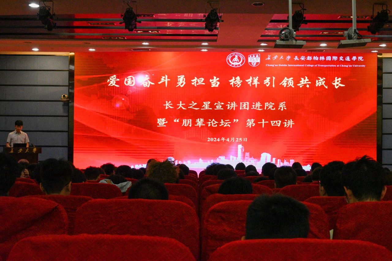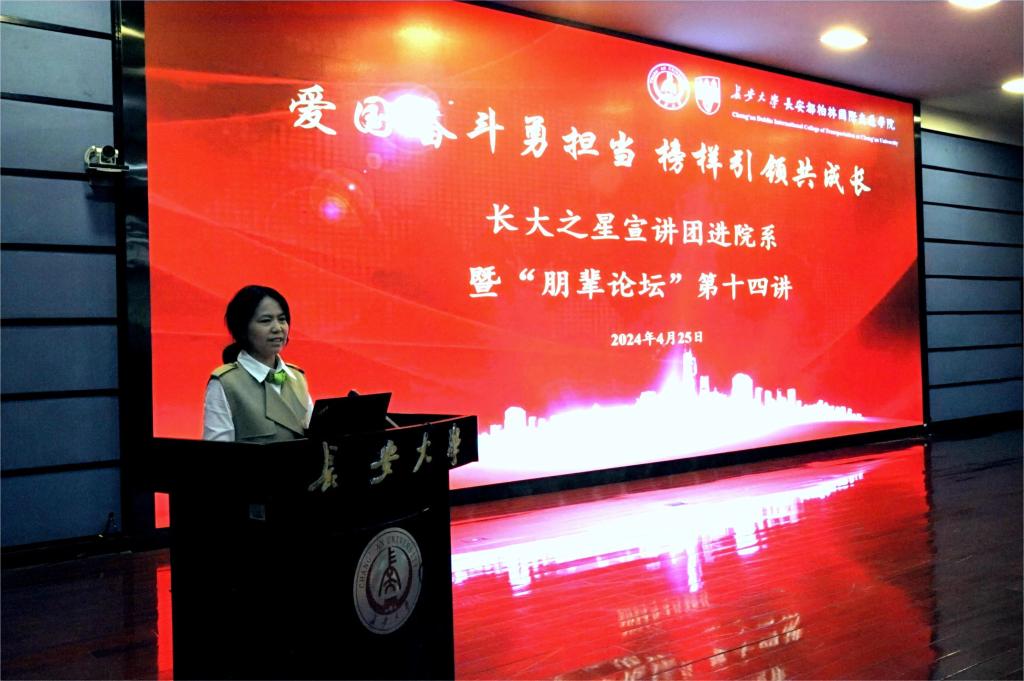 在北校区会议中心二层报告厅举办“爱国奋斗勇担当 榜样引领共成长” 长大之星宣讲团进院系活动暨“朋辈论坛”第十四讲。学院党总支副书记张艳萍及各年级辅导员出席本次宣讲会,2023级全体本科生参加活动。活动由学生事务部主任孙士强主持。