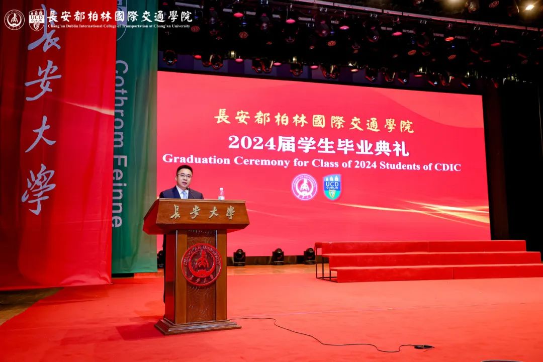 都柏林大学副校长Colin Scott在毕业贺词中表示,2024届毕业生的培养质量充分证明了中爱合作办学成效显著,这四年学习生活意义非凡。在超越传统学习模式的教育环境中,同学们获得了在世界一流大学就读的国际化体验,获得了在中国乃至全球舞台上实现个人和职业发展所必备的技能、经验和态度,当大家回顾这段旅程时,请记住你们也是令人骄傲的都柏林大学的校友。希望同学们能够保持与都柏林大学的联系,遍布全球的都柏林大学毕业生网络资源,也将为大家提供丰富的交流、学习和成长的机会。