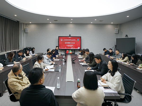 在鸿远教学楼四层会议室召开教职工大会,宣布学院党总支和校团委关于学院科级干部任免的决定。学院领导班子与全体教职工参加会议,会议由副院长贺燕飞主持。