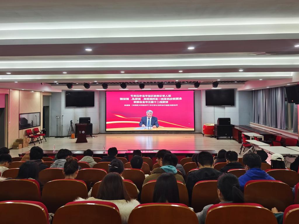 为深入学习贯彻习近平新时代中国特色社会主义思想,全面贯彻落实党的二十届三中全会精神,学院各学生党支部12月6日晚于鸿远四楼报告厅开展学习党的二十届三中全会精神主题党日活动,党支部书记凌贤武、张力雄、梁晶栋和各支部全体党员参加活动。活动由辅导员张朔主持。