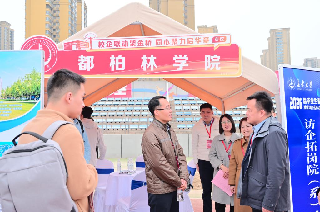 2026年3月25日,学校在朝晖体育场举办2026届毕业生春季就业双向选择洽谈会(以下简称“双选会”),邀请了中建集团、中交集团、中铁集团等800余家知名企业参会,涵盖多个领域、学科及专业。学院领导班子以及学生事务部工作人员来到会场,与各招聘单位代表深入洽谈,着力为毕业生拓展优质就业渠道。学院2026届毕业生踊跃参与,积极与心仪企业展开交流。部分低年级学生也主动到场观摩,通过求职赋能体验、生涯规划指导、与企业面对面交流等方式了解就业市场现状,为未来求职提前规划布局。