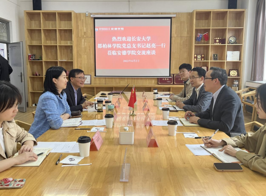 中外合作办学的运行发展现状,并对安德学院在中外合作办学领域取得的成绩给予高度赞扬。他指出,要以政治建设统领支部建设,充分发挥党支部在学院发展中的引领作用,包括政治引领、学科引领、科研引领、教学引领、文化引领以及服务引领六大作用,以高质量党建引领学院高质量发展。他希望通过本次交流研讨,能够深入学习安德学院的成功经验和宝贵做法,拓展工作思路与视野,互学互鉴,共同进步。