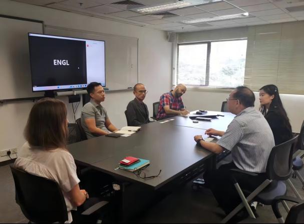 为进一步加强学院与海内外知名高校的合作,保障学院浸入式英语夏令营的顺利开展,2023年6月29日,学院特聘顾问杨光辉、国际交流中心负责人管含笑赴香港理工大学人文学院参观访问,并与人文学院英文系主任Dennis Tay,英文系教授Max Diaz、Margo Turnbull和Rickey Lu进行座谈交流。