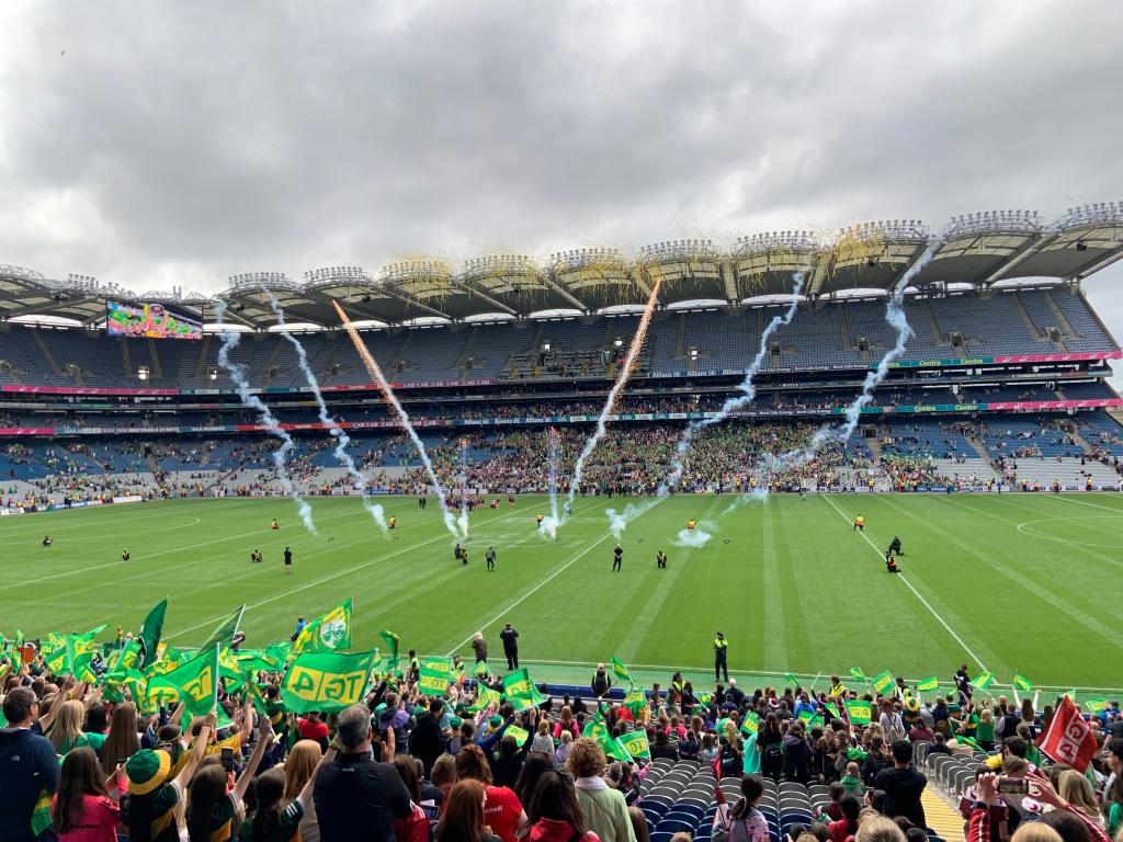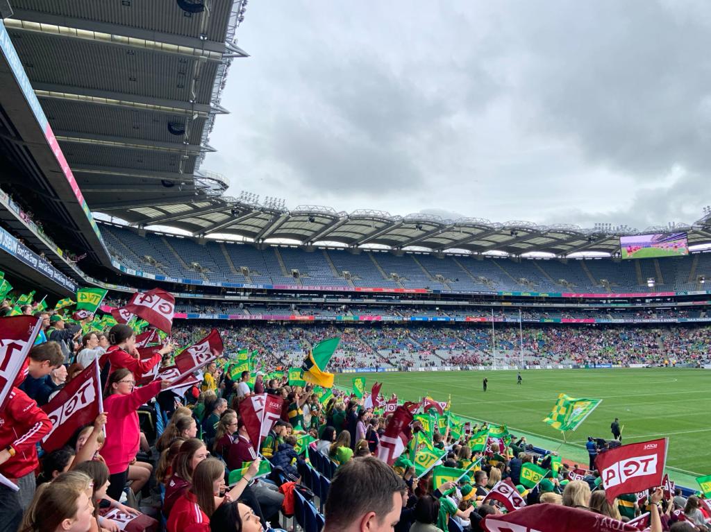 8月4日,全体同学来到Croke Park体育场观看了TG4女子盖尔式足球全爱尔兰决赛。盖尔式足球(GAA)是主要流行于爱尔兰的一种团队球类运动,与板棍球并列为爱尔兰的两大运动。赛场上,同学们挥舞着球队的旗帜,为运动员加油呐喊,充分感受爱尔兰盖尔式足球的热情与魅力。