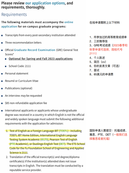 1. 哥伦比亚大学托福成绩要求不低于100分,不接受拼分,单项不低于25分