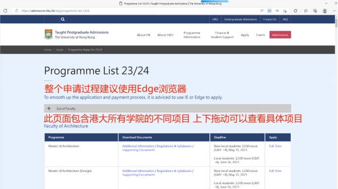 (1)进入申请的官网://admissions.hku.hk/tpg/programme-list-2324