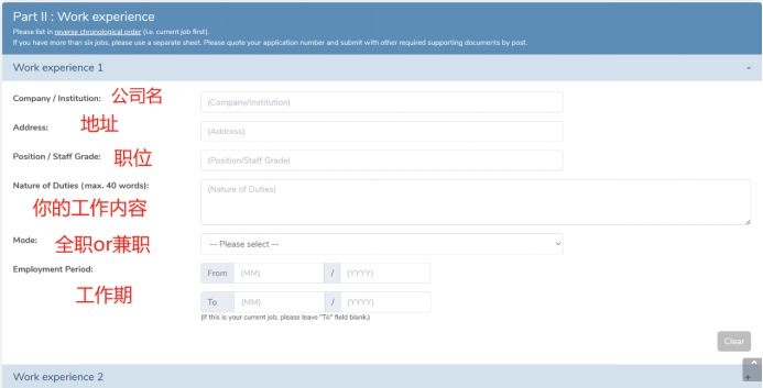 同理,如果有更多的经历,可以在working experience2,3,4里面填写
