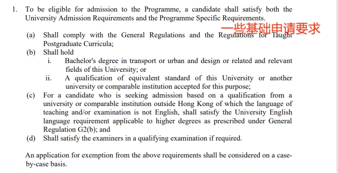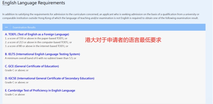 c.香港以外的大学或同等院校学历申请入学,英语水平及汉语水平需达标