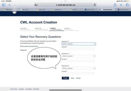 设置你的密保问题,这里的密保问题,用于忘记密码后找回密码: