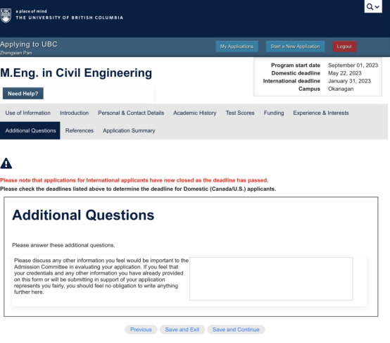 接下来填写你打算如何为学业提供资金支持(How do you plan to fund your study?),UBC的部分研究生项目会提供一定的补助,就可以在这里申请: