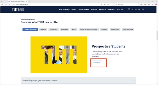 Step 1:首先进入学校官网(//www.tum.de/en/)