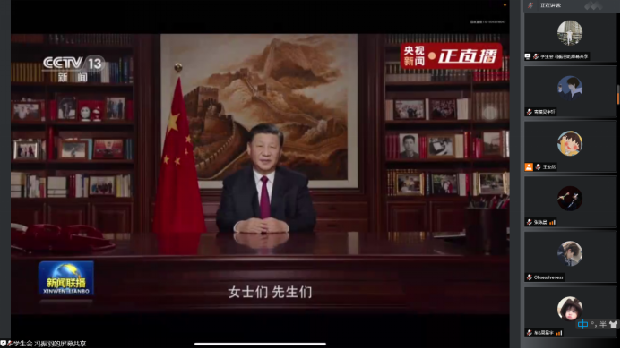 歌会开始前,学院组织参会人员共同观看了“习近平总书记发表二〇二二年新年贺词”现场直播,师生代表认真聆听重要讲话,点赞伟大成就,热议新年祝福,共同迎接2022新年到来。