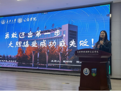 谢舒珂同学以同学们面临的主要难题为切入,开展了以“勇于迈出第一步,大胆接受成功或失败”为主题的宣讲。拥有多项国家级奖项的她,通过自己三次参加创赛的心路历程——从手足无措到铩羽而归,再到最后的斩获佳绩,向面临学业困惑的同学传递了自己的宝贵经验。