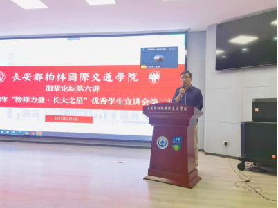 朋辈论坛第六讲暨2022年“榜样力量·长大之星”优秀学生宣讲活动第二讲于5月9日19:00顺利举办。本次活动邀请到了三位“长大之星”获得者——公路学院谢舒珂、运输工程学院李佳欣、谢栋城主讲,设线上直播和线下会场。学生事务部主任孙士强出席会议,2021级辅导员张力雄主持会议。