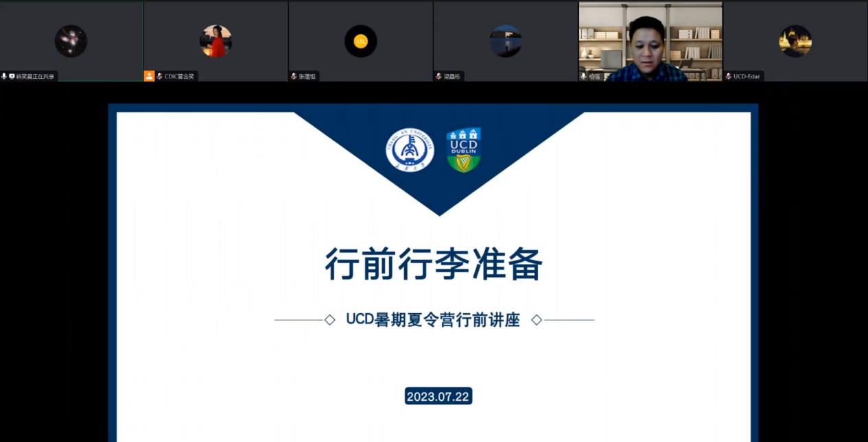 2023年7月22日下午,学院召开2023爱尔兰都柏林大学(UCD)暑期夏令营行前培训会。学院院长汪海年、UCD全球中心老师余兆源、夏令营带队老师管含笑、张力雄、韩笑晨、梁晶栋及本次夏令营全体45名学生共同参加了本次培训会。培训会由副院长柏强主持。