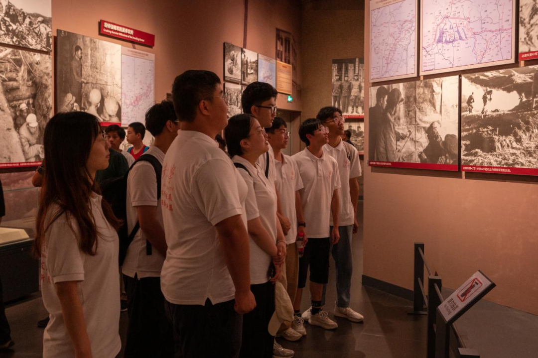 7月26日下午,实践队来到抗美援朝纪念馆参观学习。通过对两座不同时代的大桥的调研,实践队员们认为中朝友谊之牢固,来源于两国人民结下的深厚情谊,以及志愿军在战争中彰显的伟大抗美援朝精神。来到纪念馆内,实践队员了解志愿军在战争前线所使用的武器、被服、粮草等物资。为躲避美军的空中轰炸,战士们被迫将生活居所搬入洞穴,在艰苦的生存条件下保家卫国。队员们走进英烈纪念馆,重温了黄继光烈士的英勇事迹。抗美援朝战争中,上甘岭战役是中国人民志愿军扭转战局,赢得胜利的重要战役之一。黄继光烈士在上甘岭战役期间,用胸膛堵住敌人地堡的射击口壮烈牺牲,为志愿军夺取高地作出不可磨灭的贡献。