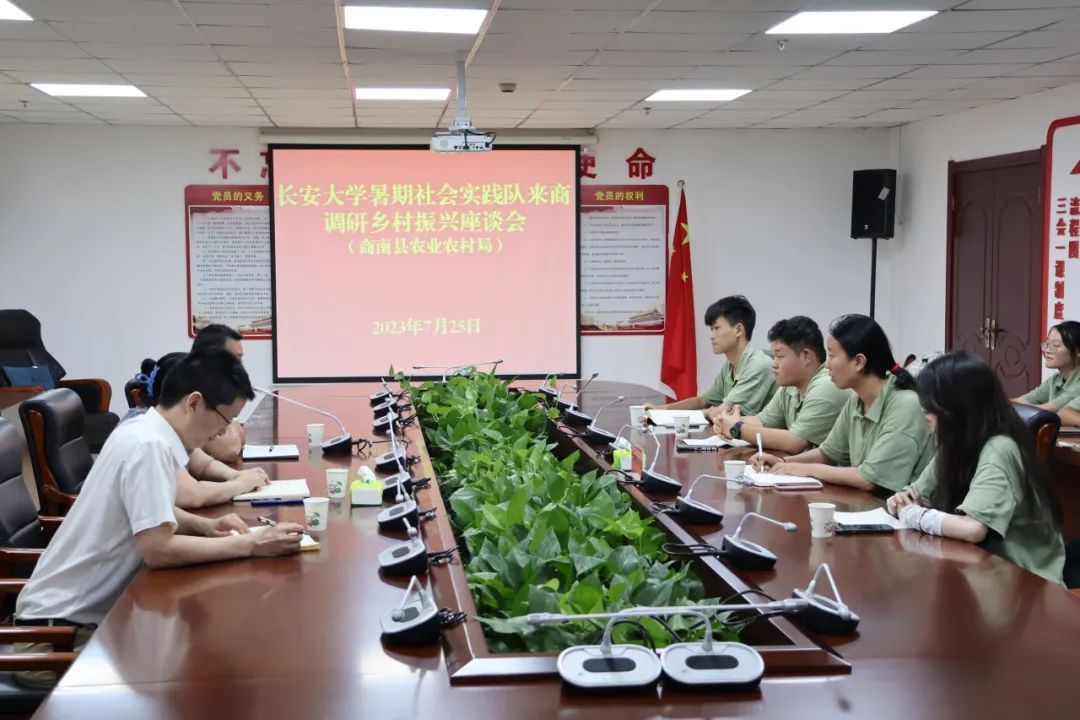 赴陕西商洛“深耕产业扶贫,赋能乡村振兴”暑期社会实践队前往商南县农业农村局开展交流座谈会,商南县农业农村局办公室主任陈明金,县乡村振兴局党组成员、信息中心主任刘世武,县特产中心副主任李晓丽出席活动,实践队共16名队员参加座谈。